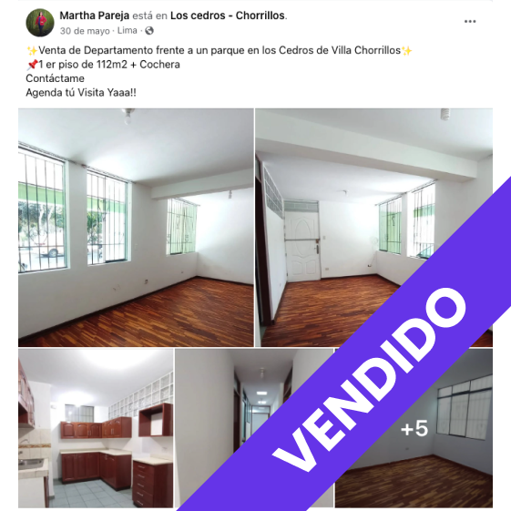 ““En solo 7 días cerré una propiedad de $110,000 en Chorrillos gracias a las campañas inmobiliarias.”